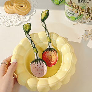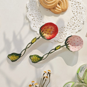 陶瓷草莓勺手绘釉下彩调羹汤匙家用汤勺甜品勺