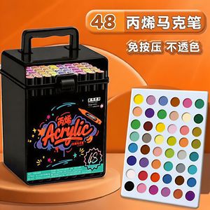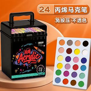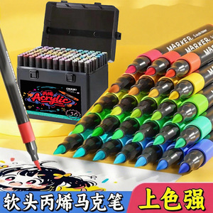 丙烯马克笔36黑杆软头儿童小学生美术画画专用不透色可叠色可水洗