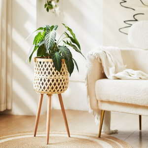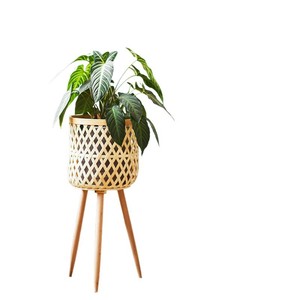 厂家直销客厅简约落地式花盆架阳台可移动竹藤编花篮绿植置物架手
