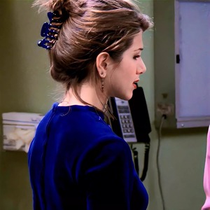 フレンズ レイチェルと同じスタイルのジェムブルーのダブルトゥースグリッパー、フェミニンな後頭部のヘアスタイル、中型のサメクリップ