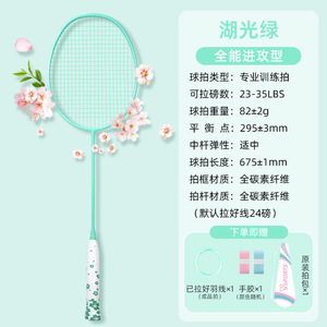 フルカーボン 5U-シングルショット丨[湖光グリーン] グリーンライン-無料ラケットカバー + 滑り止めハンドグルー + 引っ張り糸 24 ポンド-エントリーに最適
