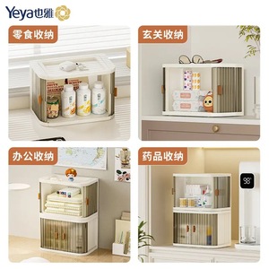 也雅桌面收纳盒化妆品护肤置物架零食办公室工位整理箱防尘杂物柜