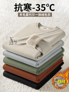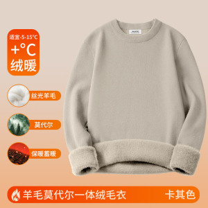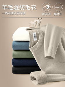 カーディガンモーダル暖かいニットセーターメンズボトリングシャツ秋と冬のラウンドネック多用途長袖 Tシャツ卸売
