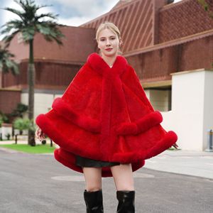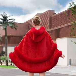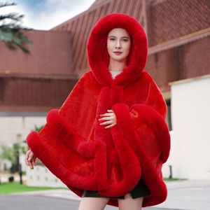 跨境电商纯色旗袍礼服外搭披肩仿皮草针织披风斗篷秋冬女生厚外套