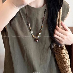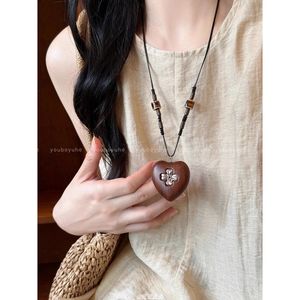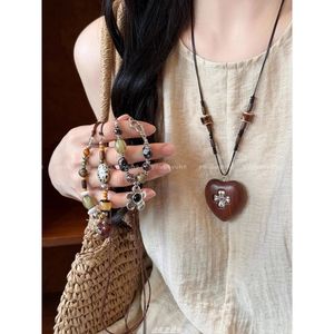 高级感木质爱心串珠项链女轻奢小众设计感陶瓷毛衣链甜酷辣妹配饰