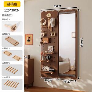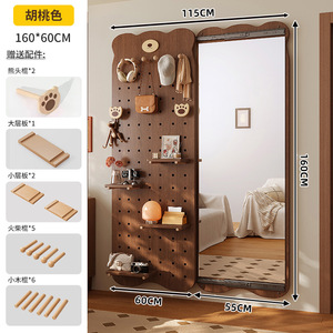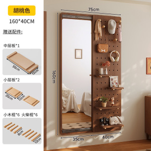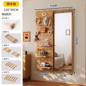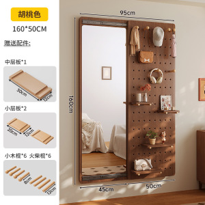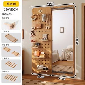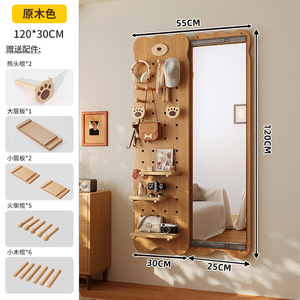 無垢材ベアホールボードドレッシングミラー一体型ドアバック収納ラック家庭用壁掛け全身鏡玄関ホールハンガー