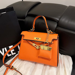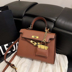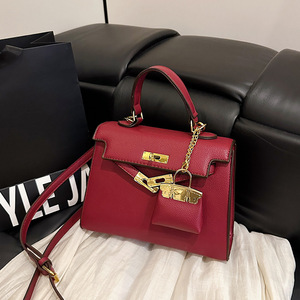 2025 新しい多用途西洋スタイルハンドバッグシングルショルダークロスボディバッグヨーロッパとアメリカのレトロなライチパターンロックケリーバッグ女性のための