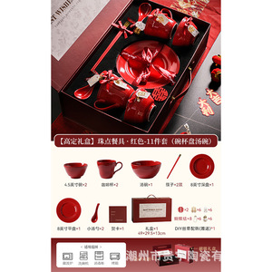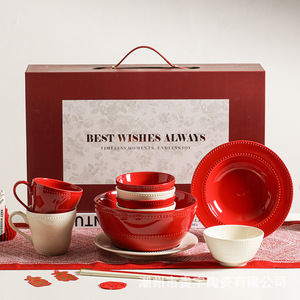 高級食器、陶磁器、花嫁への結婚祝い、赤いボウル、皿、箸セット、親友の婚約・結婚ギフトボックス