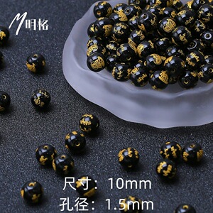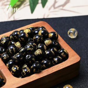 琉璃散珠五路财神烫金刻字民族国风DIY饰品配件串珠玛瑙散珠批发