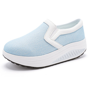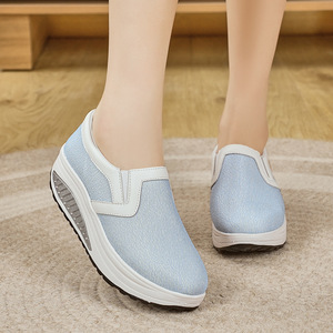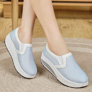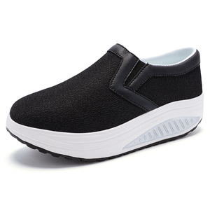 外贸新款春夏网面女鞋增高透气乐福鞋松糕厚底懒人鞋大码摇摇鞋