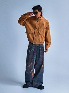 Eon Modish 25秋新作アメリカンストリートファッションハイストリート個性3Dプリントデニムパンツ