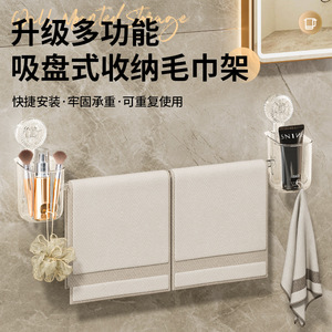 多機能真空吸盤収納タオルラック家庭用タオル収納フック付き乾湿タオル収納ラック