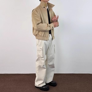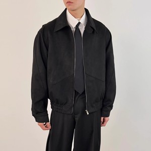 アメリカンレトロルーズリーフスエードハリントンラペルジャケットメンズ春の新作ハイエンドオールドマネースタイルジャケット