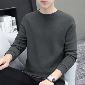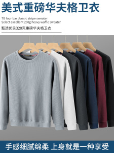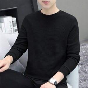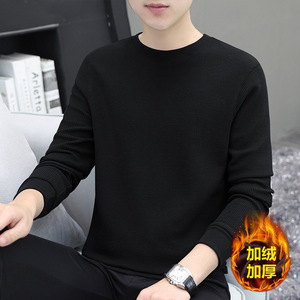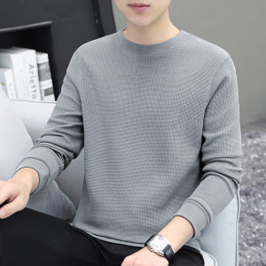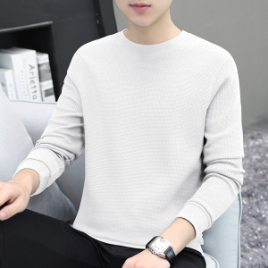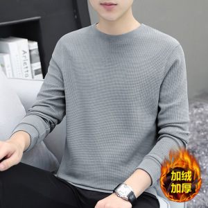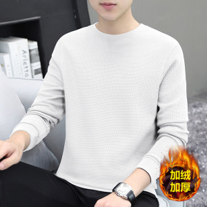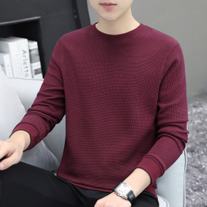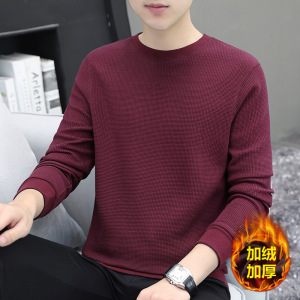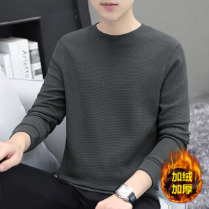 厚手のワッフル生地のメンズ長袖Tシャツ、秋冬新作、高級感のある裏起毛で厚く暖かいインナーシャツ
