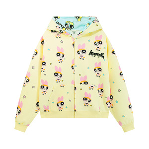 新しいアメリカンハイストリートスウェットシャツ2色キャップジャケットパワーパフガールズ長袖ジッパーカーディガンデザイントップ
