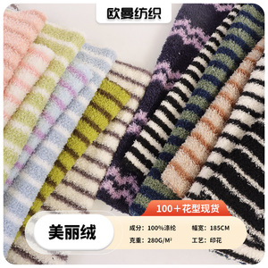 现货美丽绒条纹印花布 蚂蚁绒桂花绒睡衣鞋帽抱枕家纺云朵绒布料