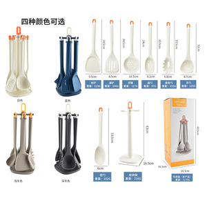 新款硅胶厨具11件套装耐高温锅铲汤勺炒菜铲勺漏勺煎铲粉色刮油刷