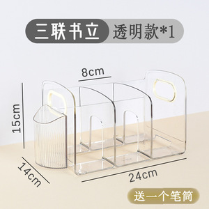 ポータブル透明3コンパートメントブックエンド+ペンホルダー