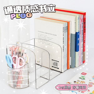 透明ブックエンドポータブルデスクトップブックスタンドデスクアクリル透明ブック収納ボックスペンホルダーバケット本棚オフィス