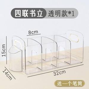 ポータブル透明4コンパートメントブックエンド+ペンホルダー
