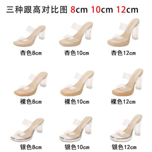 女性用透明ハイヒール、夏の新しい防水プラットフォーム、超ハイヒールスリッパ、女性用クリスタルヒール厚底サンダル