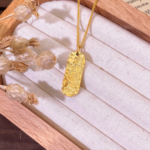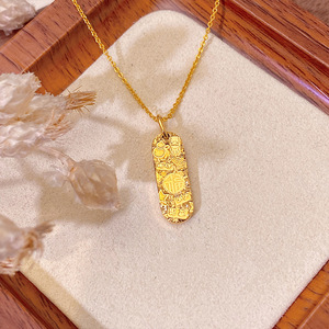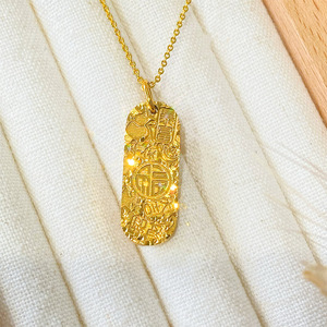 古代のサンドゴールドの吉言クラッシュアイスペンダントネックレス、女性用、富と安全を引き寄せる、幸運と富のネックレスペンダント