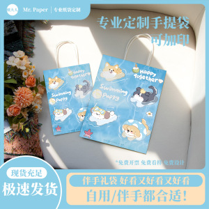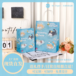 クラフト紙袋プールパーティーのギフト包装袋ケータリングミルクティーテイクアウト包装紙袋はロゴでカスタマイズできます