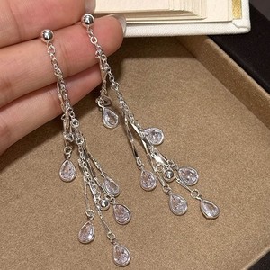 女性用の新鮮でクールなロングウォータードロップタッセルイヤリング、新しい中国風のニッチで甘くて多用途なワンスタイルのツーウェアイヤリング