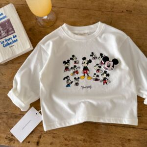 在庫あり長袖子供用Tシャツ2025秋冬韓国風カジュアルベビー半袖夏かわいいボトムシャツ男の子と女の子用