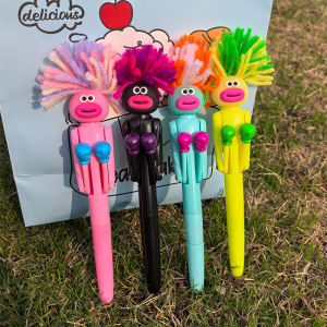 趣味搞怪炸毛人拳击笔可爱卡通互动解压笔小学生减压圆珠笔奖品新