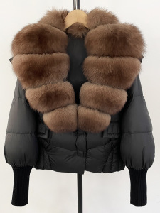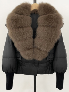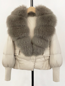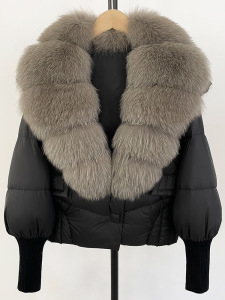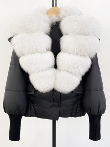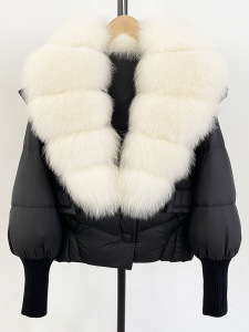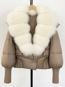 ダウンジャケットレディース冬新作ショートスタイル多用途小柄な人向けハイエンドフォックスラージファー襟ファッションブレッドジャケット