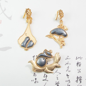 手作り diy キツネピパ宋錦パッチ生地空ペンダント合金新中国風手作りプレス襟溝底胎