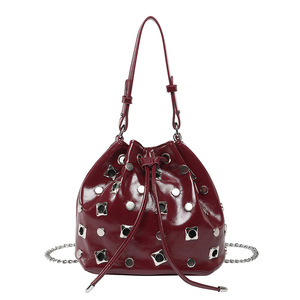 クロスボーダーバッグ 2025 新しいニッチデザインリベットバッグ西洋スタイルホットガールポータブルバケットバッグ女性のクロスボディハイエンド
