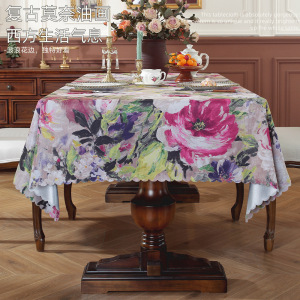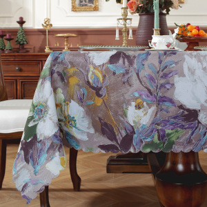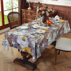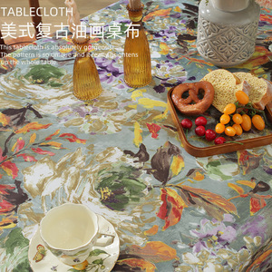 アメリカン油絵風テーブルクロス 防水・耐油 洗濯不要 波状レース装飾 雰囲気のあるテーブルクロス レストラン ホーム ホテル
