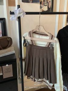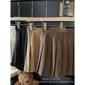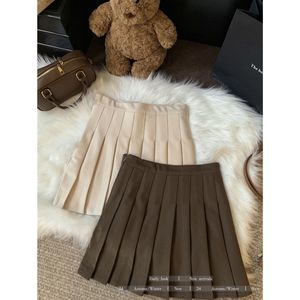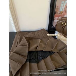 少し太ったmmカレッジスタイルの女性用ブラウンプリーツスカート、夏用厚みのある年齢を減らす小さなウールのAラインスカートとショートスカート