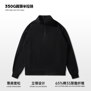 跨境潮牌春秋高领半拉链卫衣男女款宽松美式打底卫衣休闲长袖外套
