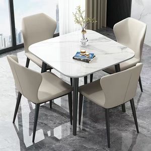 北欧輸入光沢のあるロックプレートダイニングテーブル正方形の小さなアパートカジュアルレセプション交渉テーブルネットワークホームダイニングテーブルの組み合わせ