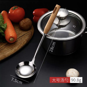严选304不锈钢汤勺火锅漏勺厨具套装榉木柄不锈钢勺子盛粥勺汤壳