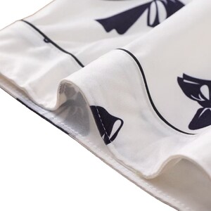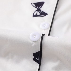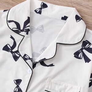 クロスボーダー新しい女性のパジャマ夏のリボンプリントラペル長袖ズボンヨーロッパとアメリカの女性のホームウェアセット