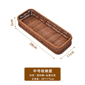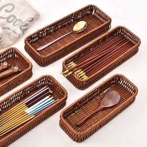 中古模造籐デスクトップ収納ボックスキッチン引き出し食器排水オーガナイザーボックスナイフ、フォーク、スプーン分離収納バスケット