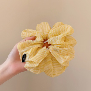 韓国風ガーゼ小チェックヘアゴム【レモンイエロー】