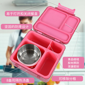 子供用弁当箱、大容量学生弁当箱、スープカップ付き、マルチグリッドシングルバックル弁当箱、電子レンジ対応弁当箱