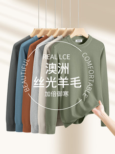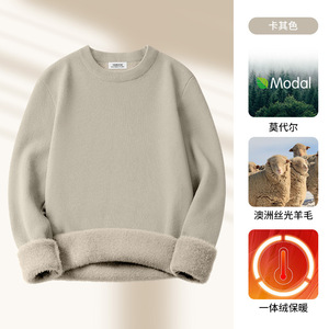 オールインワンベルベットシンプルなラウンドネックメンズセーター秋冬プラスベルベット厚みのある暖かいモーダルニットボトムシャツ男性用