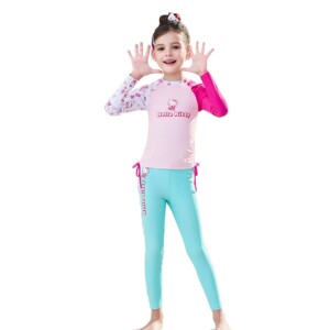 ハローキティ子供水着女の子 2025 新しい女の子分割中大型子供長袖ズボン水着卸売