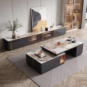 岩板功夫泡茶茶几家用客厅茶台一体轻奢现代多功能茶几电视柜组合