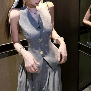 灰扣马甲+长裤