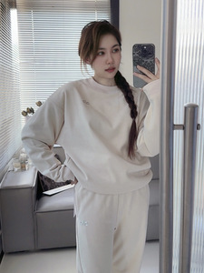 alo2025春季字母LOGO毛圈圆领长袖宽松情侣卫衣纯色简约款百搭yog