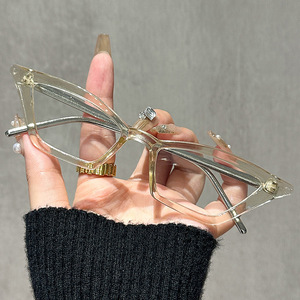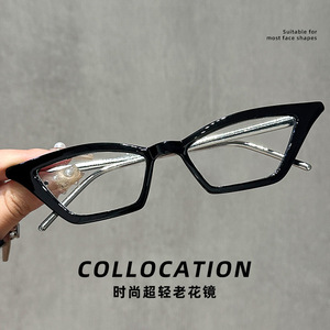 ファッショナブルな三角形キャットアイセミメタル高級中高年老眼鏡抗青色光コンピュータメガネ工場直販
