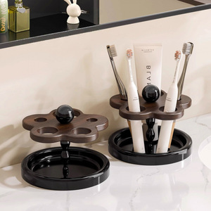中世スタイルの電動歯ブラシ収納ラックカップルホームバスルームシンク花型無垢材シートホルダー収納ボックス
