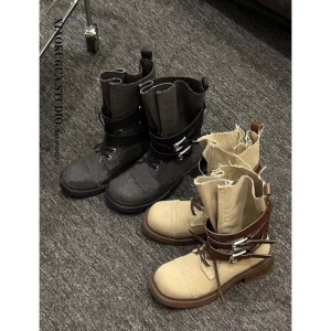 复古做旧马丁靴女款2025新款粗跟皮带扣短靴百搭休闲机车靴骑士靴